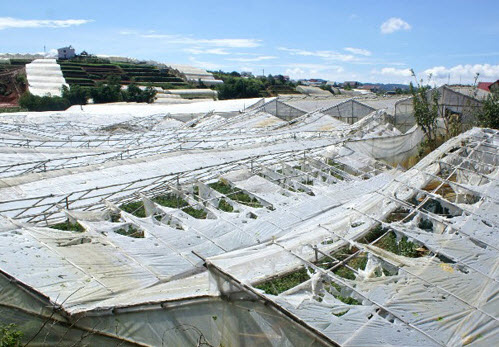 Hình minh họa mô hình nhà lưới Đà Lạt bị phá hỏng
