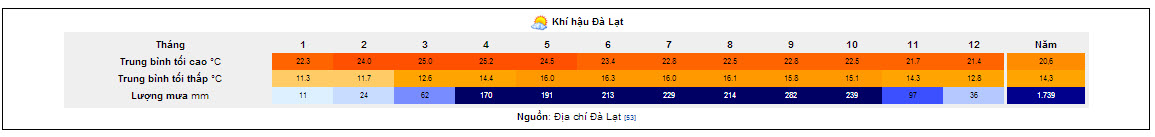 Biểu đồ khí hậu Đà Lạt; nguồn http://vi.wikipedia.org/