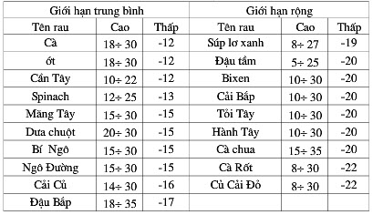 Nghiên cứu nhiệt độ một số loại rau sinh trưởng tốt