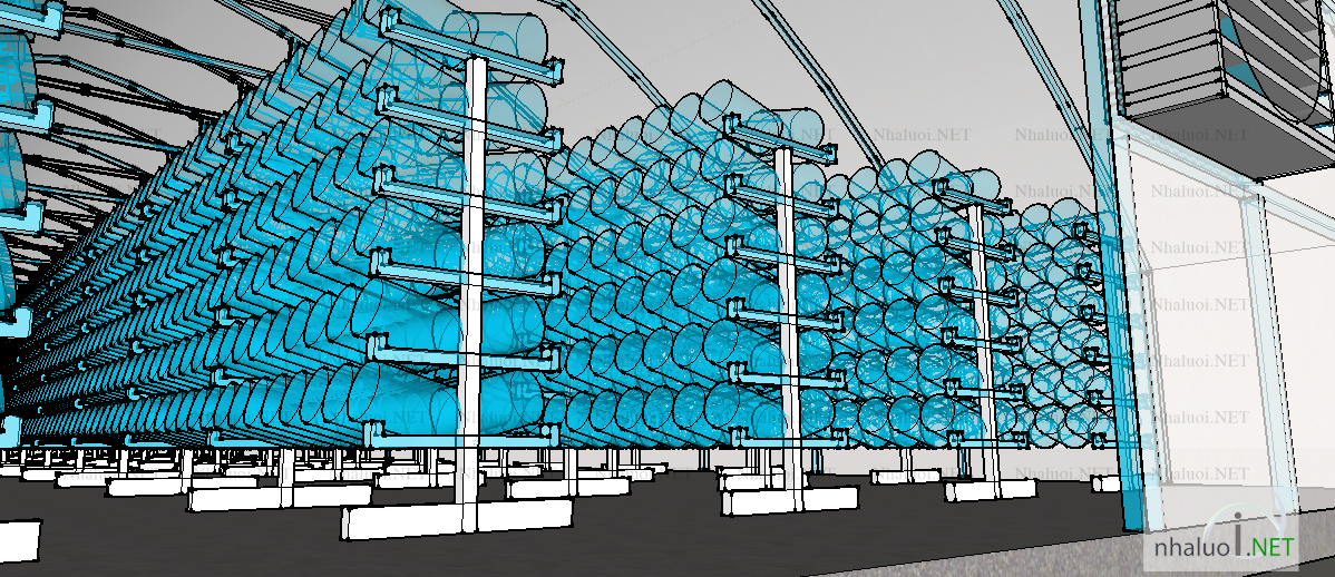 Hình minh hoạ mô hình nhà kính nhà lưới trồng nấm của nhaluoi.net
